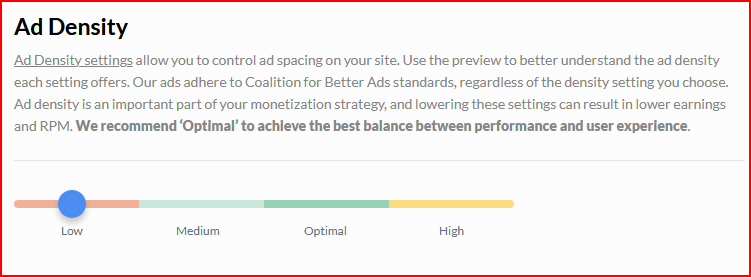 I’ve included an image in this post that shows my current Ad Density setting for these ads. This setting controls how many ads appear and their spacing, and as you can see, it’s currently set to Low to prioritize your reading experience while still supporting the site. Please note that ‘Low’ is the lowest ad density option available.