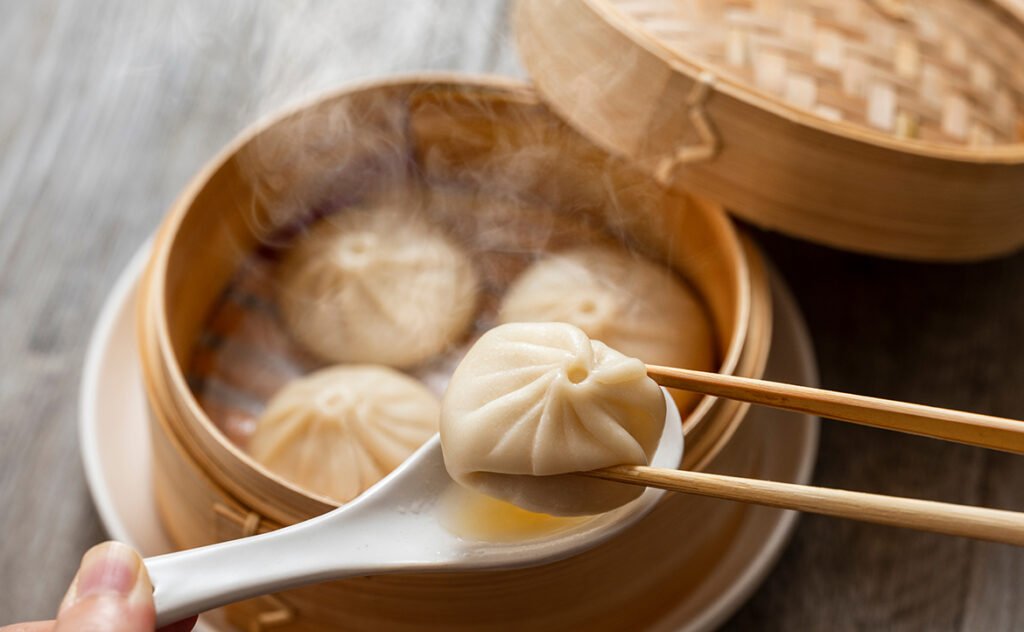 - A type of traditional Chinese steamed bun (xiǎolóngbāo) prepared in a small bamboo basket, renowned for its delicate skin and hot, savory soup trapped inside the filling.