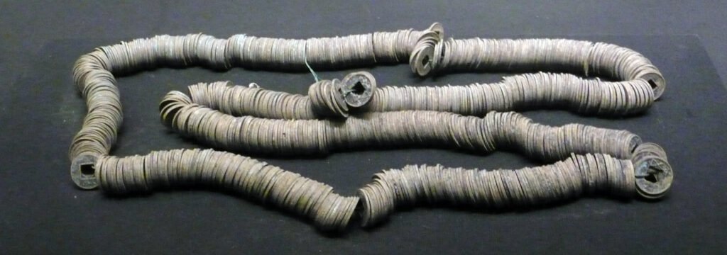 Yan Can opened the bag, revealing it full of copper coins. Su Yi picked up a string of 1,000 guan [貫/贯 | guàn | string of 1,000 cash coins], a smile brightening her face.