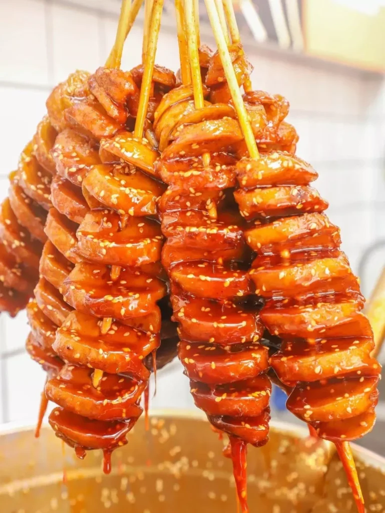 The entire street was filled with food aromas. At a glance, one could see grilled gluten [η€ι’η | kΗo miΓ n jΔ«n], grilled chicken legs, rice-wrapped chicken wings, braised brain in foil [ι«η΄θ ¦θ± | xΔ« zhΗ nΗo huΔ], rice noodle rolls [θ Έη² | chΓ‘ng fΔn], pan-fried oysters, and mango pomelo sago dessert [ζ₯ζηι² | yΓ‘ng zhΔ« gΔn lΓΉ]. This was Qin Yuyanβs first time at such a food street β everything looked novel and appetizing to her.