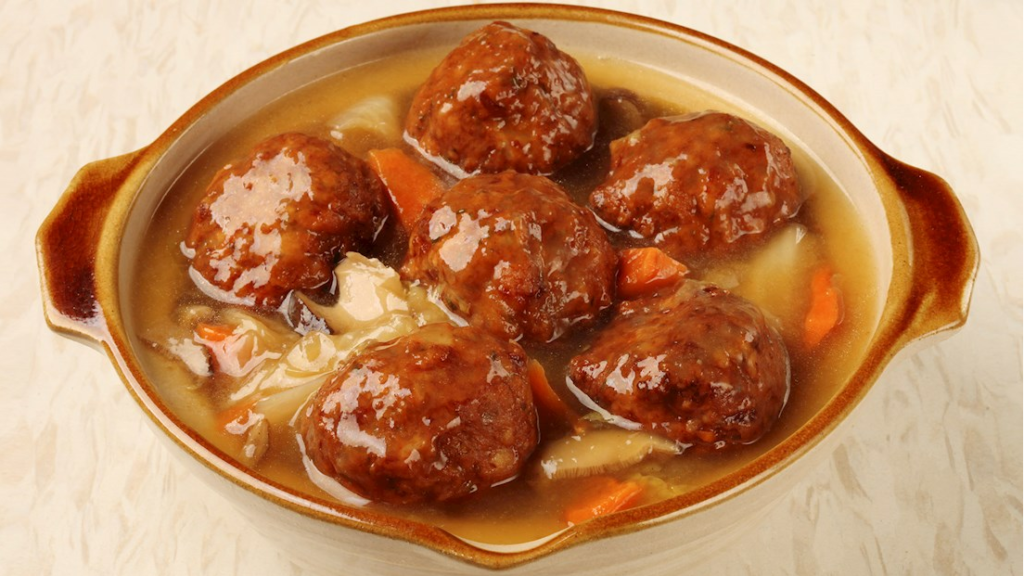 - A large pork meatball stewed with vegetables, named for its resemblance to a lion’s head.