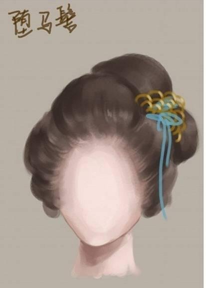 - Original: zhuìmǎjì (坠马髻). A women’s hairstyle popular during the Tang dynasty, characterized by a high bun that appears to be tilted to one side, as if the wearer had just fallen from a horse.