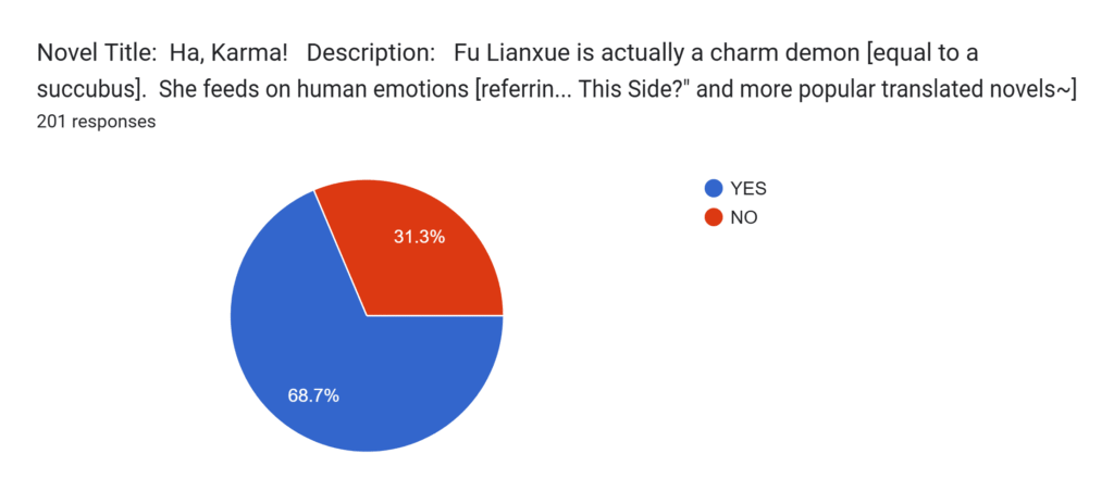 LP: This novel has won the votes! Well, it was tied with another novel but I didn’t know the other one is actually being translated actively at the moment~