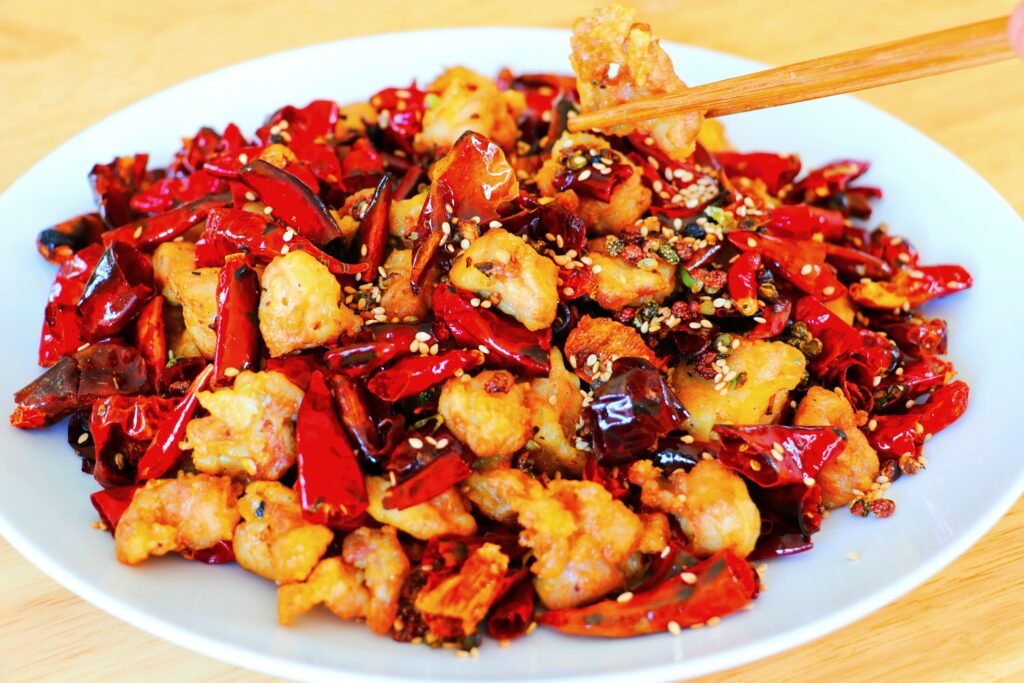 Before she could finish, Song Yuhang picked up a piece of spicy diced chicken33 and put it in her bowl. “Try it. Although it’s not as refined as your home cooking, it’s definitely clean, hygienic, and authentic.”