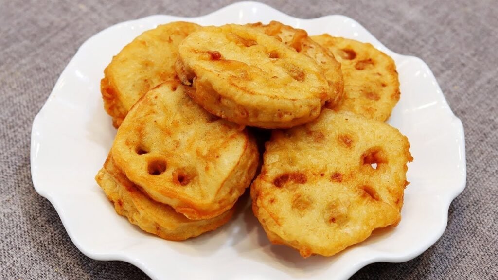 She took it into her mouth, gently holding it with her fingertips. After taking a bite, she held it with her fingers again. It was undeniable that the lotus root patties Sun Miao made were indeed delicious and perfectly suited her taste. The outside of the lotus root patty had a layer of batter, fried to a crisp, and some crumbs even fell off when she bit into it. The lotus root slices inside, however, were very crisp and tender, still retaining a hint of their raw freshness, though they were definitely cooked through.