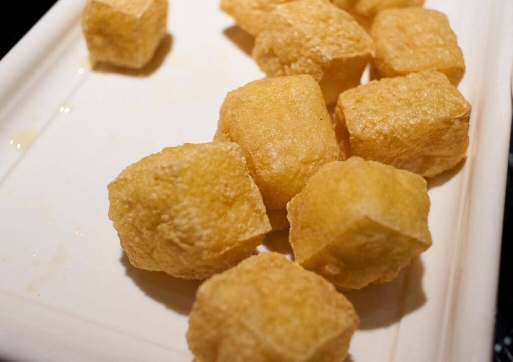 “Fried tofu puffs are an indispensable side ingredient in Duck Blood Vermicelli Soup. Because the puffs soak up the duck broth, their flavor is okay, but the difference between them and the other ingredients is too vast. It’s like they weren’t cooked in the same pot.”