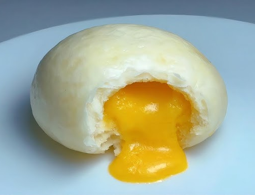 A bowl of congee, a plate of naihuang bao2, and two small side dishes.